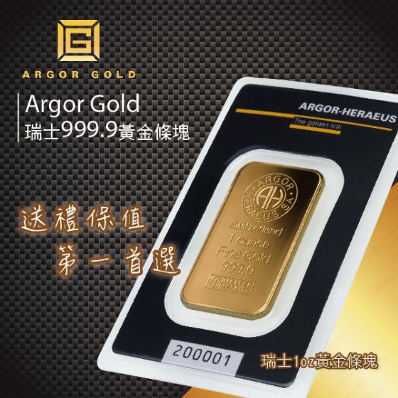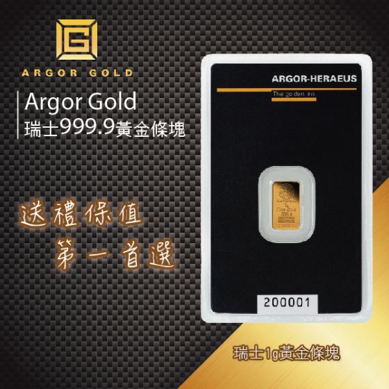 黃金主商品:由瑞士鑄造廠Argor-Heraeus密封編號之999.9純特價金,內含原廠黃金憑證卡。