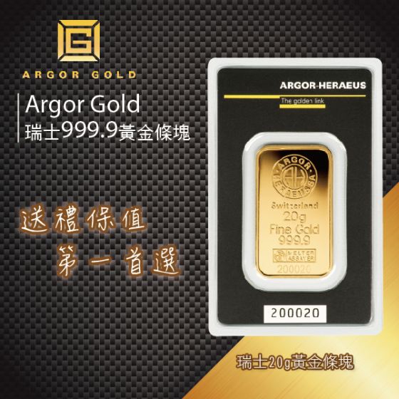 品名:【Argor Gold】瑞士999.9黃金條塊20g
