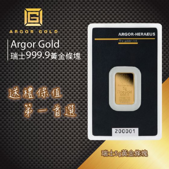 只要2,179元起(含送禮運)即可享有【Argor Gold】原價最高95,000元瑞士999.9黃金條塊1g/5g/20g/1oz(盎斯)?